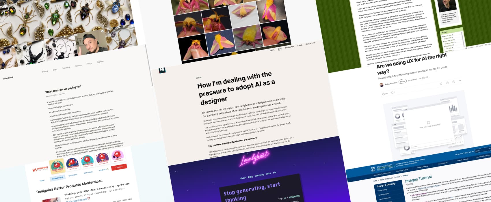 My weekly newsletter for designers, UXers, devs, and curious tech people. It’s packed with articles, resources, tools, inspiration, and the occasional spicy take. This is the archive, subscribe to get it in your inbox.