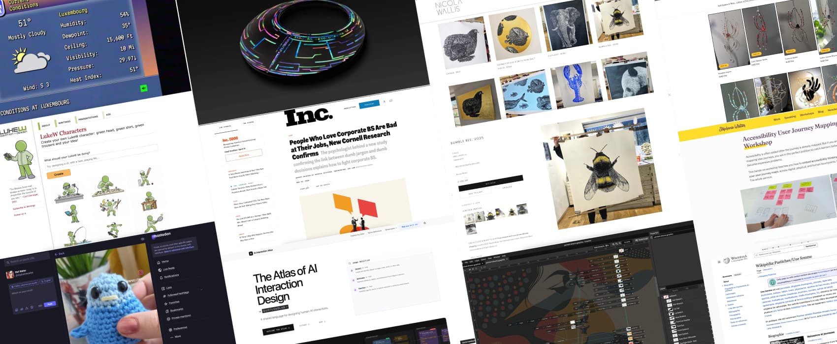 Pixels of the Week is my weekly-ish curated newsletter for designers, UX folks, devs, and anyone building accessible, inclusive, usable (and let’s be honest, awesome) digital products. This week we explore designing AI experiences that build trust, a new accessibility user journey mapping workshop, and research proving people using corporate BS are bad at their job. Also: a free open-source vector editor, linocut art, and why crochet is basically engineering.